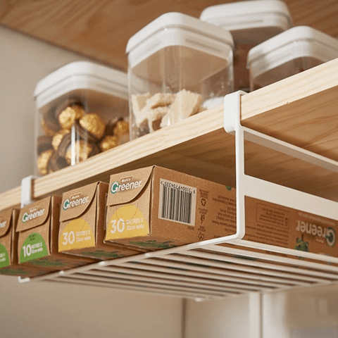 What’s wonderful about these holders is their design, which doesn’t occupy much space but lets you store multiple items inside. They’re also very affordable and easy to find. Additionally, you can use them to store glass bottles in the kitchen or your children’s snacks, providing convenient access.