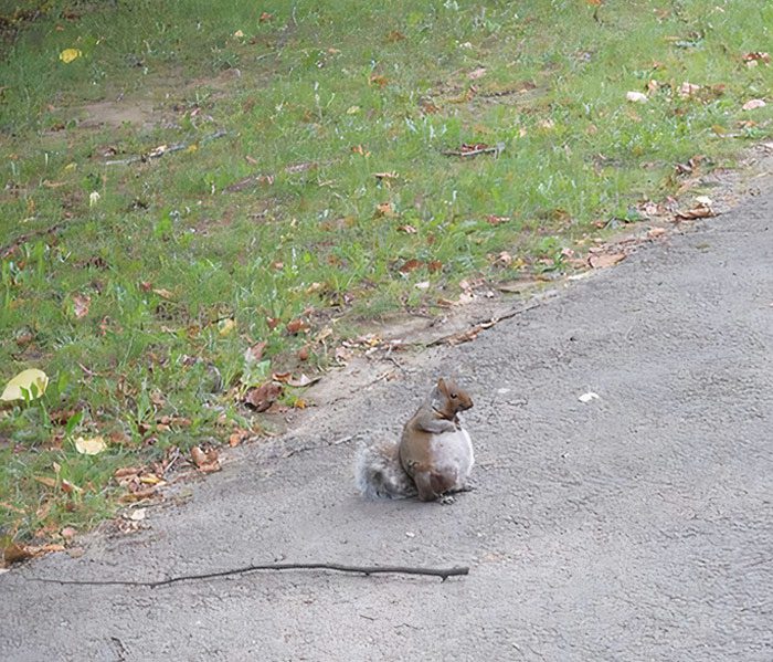 Sometimes, it’s hard to tell whether an animal is pregnant, simply overfed, or just naturally has a larger belly. That’s certainly the case with this joyful squirrel.