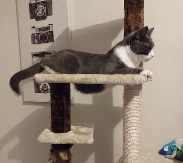 And that’s exactly what we think is happening with this pregnant cat. Cats aren’t known for lounging on their bottoms, so this unusual stance is probably a result of her pregnancy. She looks so endearing with her tiny paws and large belly in such an unusual position!