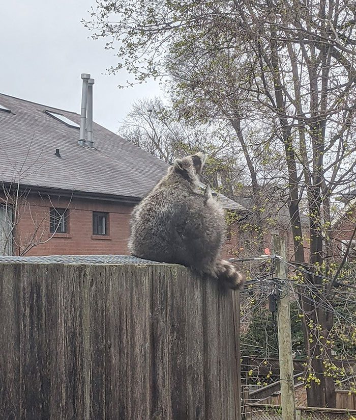 That’s why it’s always so surprising to see heavily pregnant animals still going about their day as agile as they were before their pregnancy. Take this raccoon perched on a fence, for example—how is that even possible?