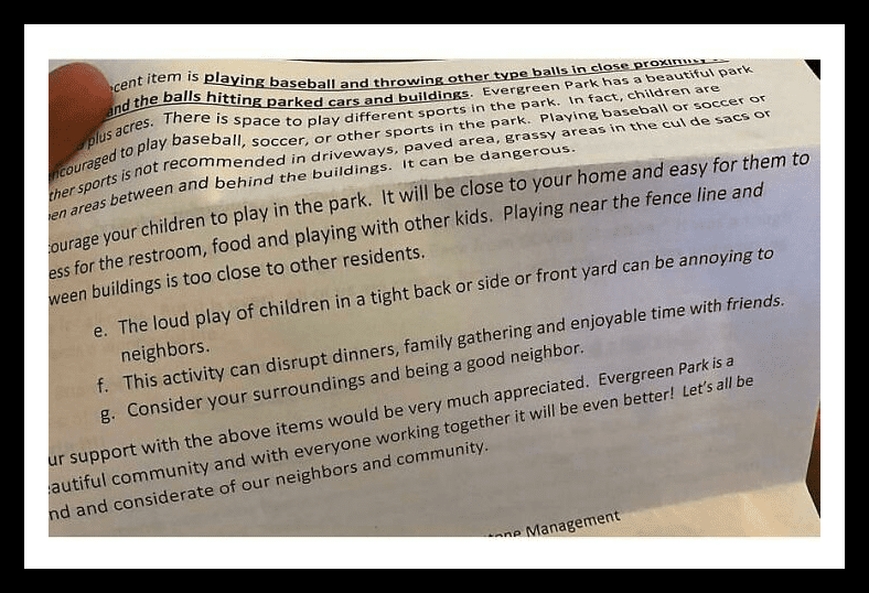 Unfortunately, this HOA disagreed. They sent a letter stating that children’s playtime should be restricted to the park, citing the noise as a disturbance to the neighbors. It’s sad, as few things in life are as joyous as the sound of kids laughing and having fun.